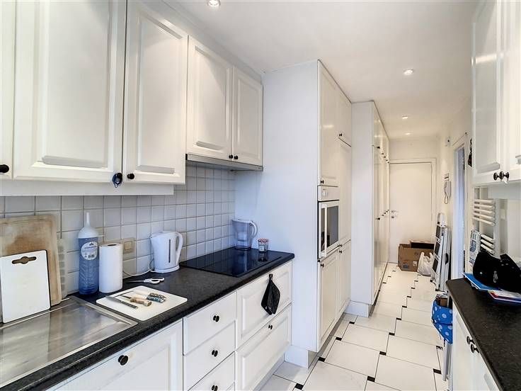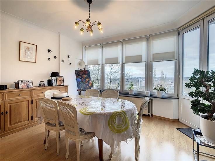 Domaine, licht appartement met 2 slaapkamers van ±110 m² met twee terrassen van ±5 en 3 m², waarvan de grootste op het westen ligt, gelegen op de 3de verdieping van een goed onderhouden gebouw met een prachtig zicht op het groen en de stad in de onmiddellijke nabijheid van Altitude 100. Het bestaat uit een inkomhal van ±10 m², een apart toilet, een lichte woonkamer van ±35 m², een volledig ingerichte keuken met veel bergruimte (oven , kookplaat, afzuigkap, koelkast, vriezer, vaatwasser) welke toegang geeft tot het voorterras op het westen. Achteraan: twee grote slaapkamers van ±17 en 15 m², één met een terras van ±3 m², een badkamer (ligbad/douche, lavabo, wasplaats) en een kelder. PVC kozijnen met dubbele beglazing, parket, gepantserde deur, standaard lift, gemeenschappelijke oliegestookte ketel. Het appartement is gelegen nabij winkels, scholen, vervoermiddelen en sportverenigingen (tennis Forest Domaine). Positieve punten: locatie +++, twee terrassen, grote slaapkamers, helderheid. De metingen worden alleen ter informatie gegeven. Lasten (provisie): 160€/maand (gemeenschappelijke ruimtes, verwarming, water). Bezoeken en info: 0478/07.34.26