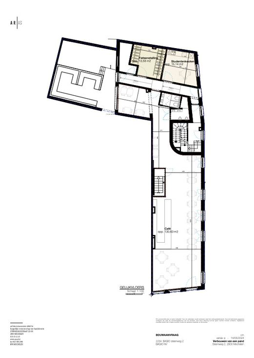 De oppervlakte is 130 m2 met zowel een intern terras als de mogelijkheid om buiten een terras te zetten voor het pand. Contacteer ons gerust voor een bezoek ter plaatse.