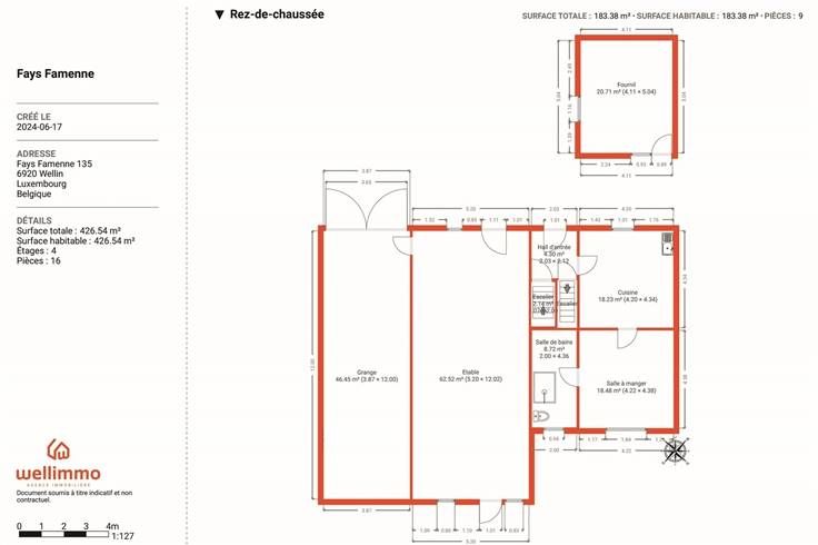 VERKOCHT ! Wellimmo is blij u, in het charmante dorp Fays-Famenne (gemeente Wellin) dit oud, te renoveren hoevetje te kunnen voorstellen. Het pand is heel rustig gelegen, in een populair dorp waarvan de authenticiteit van de gebouwen bewaard is gebleven. Het dorp is heel goed gelegen: in de onmiddellijke nabijheid van velden en bossen, terwijl het maar 7 km ver is naar Wellin met al zijn voorzieningen, 9 km van de E411, en op de weg die naar de Semoisvallei leidt! Dit prachtige gebouw in lokale steen en baksteen biedt veel ontwikkelingsperspectieven omwille van de prachtige volumes, de schuur, de stal en de zolder: grote gezinswoning, tweede verblijf, vrij beroep, kangoeroewoning, onafhankelijke studio ... De indeling van het gebouw, goed teruggetrokken van de weg, zou het mogelijk maken om een aangename entree te creëren en de schoonheid van het stenen gebouw te benadrukken. Een oude bakkerij om te renoveren maakt het plaatje compleet! Het geheel is gelegen op een perceel van 25 are 10 centiare. Het dak van het hoofdgebouw werd onlangs vernieuwd. Onder bepaalde voorwaarden is er mogelijkheid verlaging van de registratierechten te verkrijgen. Meer informatie op wellimmo.be . Aarzel niet om contact met ons op te nemen om een bezichtiging te regelen, dit soort woningen is zeldzaam!