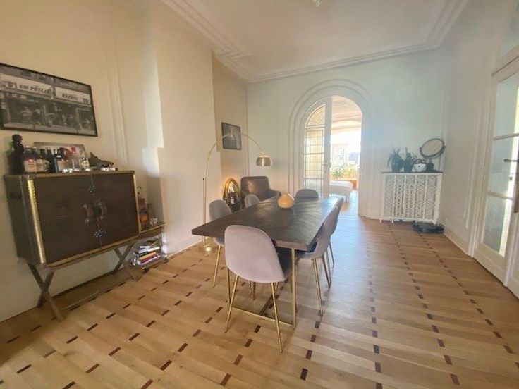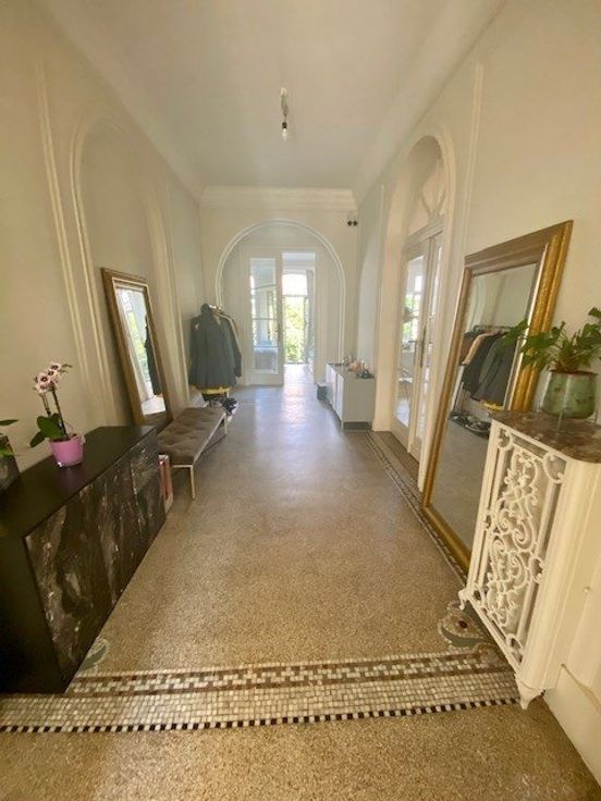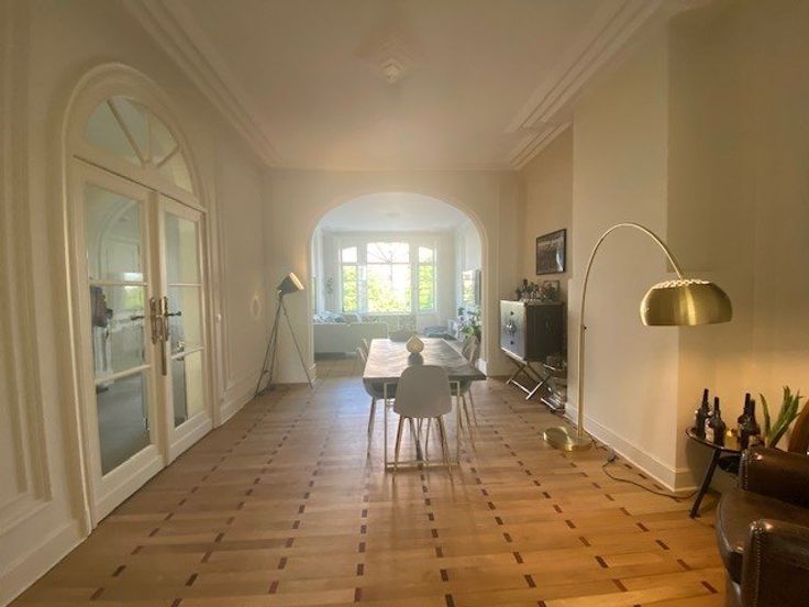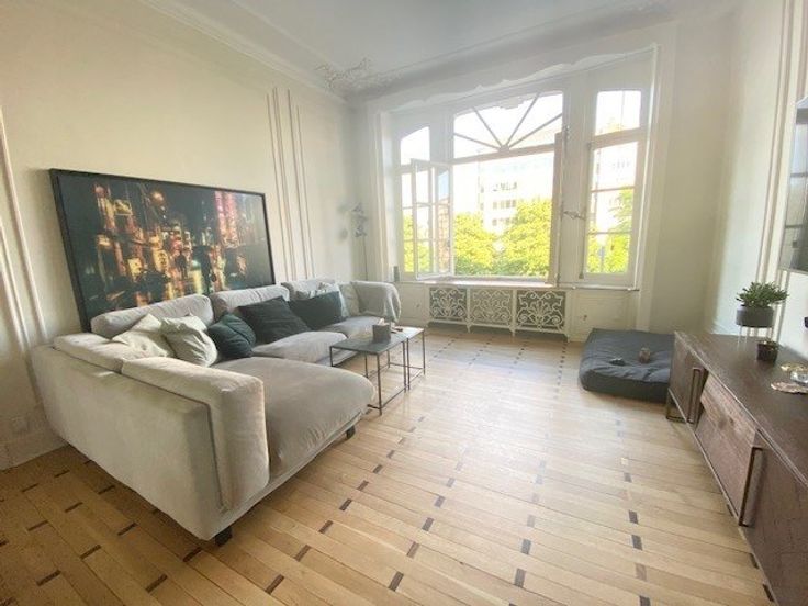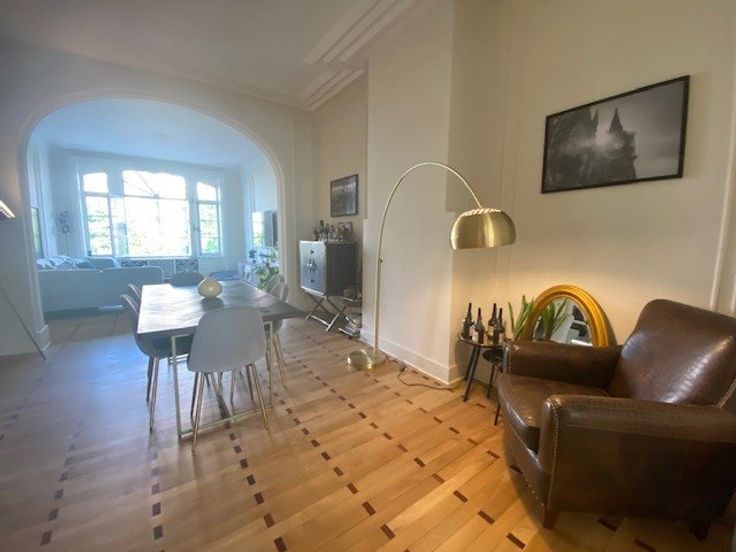 Sorry er is geen nederlandse vertaling beschikbaar. A proximité des stations de métro Major Pétillon et Thieffry, des commerces et restaurants, superbe appartement entièrement rénové en 2019 dans un immeuble de caractère de 1924 - 2ième étage gauche/4 - +/- 131 m2 brut (selon PEB) - il se compose d'un vaste hall d'entrée en granito, wc, lave-mains, de très belles réceptions composées d'un living et d'une salle à manger en enfilade avec hauts plafonds, moulures, beau parquet d'époque vitrifié, d'un bureau ou chambre d'appoint, d'une très belle et spacieuse cuisine totalement équipée moderne avec plan de travail en marbre, office équipé de lave-linge et séchoir (électroménagers Siemens), d'une agréable et lumineuse chambre des maîtres à l'ar .