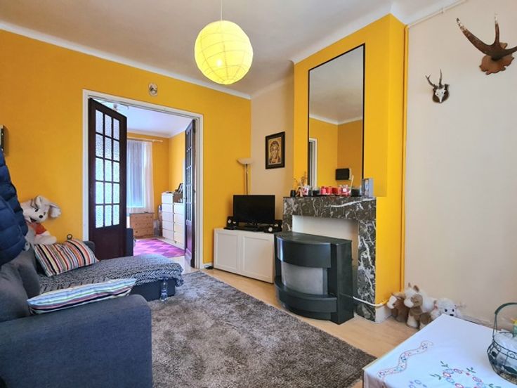 Het bestaat uit een begane grond met 2 slaapkamers en een tuin van ongeveer 75 m² met een woonkamer, een semi-ingerichte keuken van ongeveer 10 m² die toegang geeft tot een badkamer met toilet en een tuin van 44 m², 2 slaapkamers van 15 m² en 12 m² en een eetkamer van ongeveer 11 m².