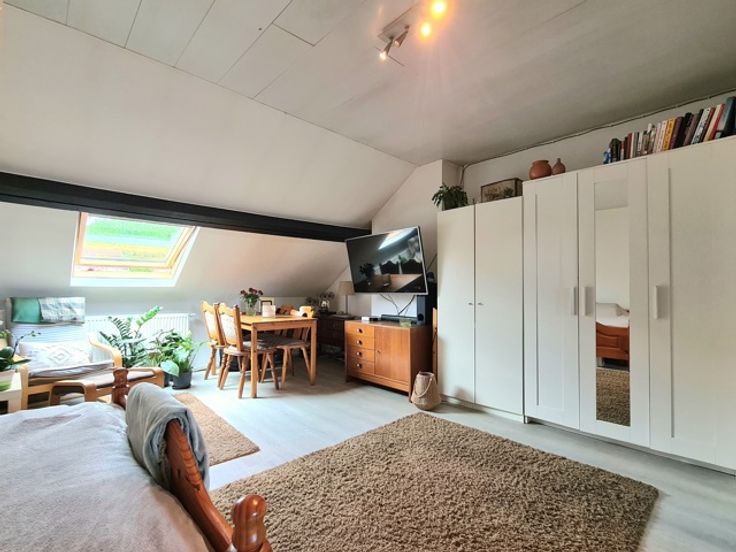 Op de bovenste verdieping, zolder verbouwd tot een STUDIO van 36 m² bestaande uit een woonkamer, keuken en badkamer met toilet.