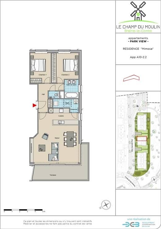 Sorry er is geen nederlandse vertaling beschikbaar. A seulement quelques minutes de la gare et du centre-ville, découvrez la toute nouvelle résidence "MIMOSA", dans le beau quartier "Le Champ du Moulin". Une résidence de 9 appartements de haut standing, en plein coeur d'un grand parc paysagé. De beaux appartements d'une grande qualité dont ce magnifique appartement de 97 m² avec terrasse situé au deuxième étage. Il se compose d'un hall d'entrée avec wc, d'un lumineux séjour avec cuisine hyper-équipée ouverte, grande baie vitrée donnant accès à la terrasse, buanderie attenante à la cuisine, trois belles chambres, une salle de douche et une salle de bains.Vue imprenable sur le parc ! Performance énergétique A+. Pompe à chaleur. Supermarché dans le complexe. Faites le choix des finitions et jouissez d'un appartement basse énergie dans un chouette environnement. Prix 273.900€ hors frais et hors tva 21%. Pour plus d'infos et/ou une visite de l'appartement témoin, contactez-nous au 02 355 50 55.