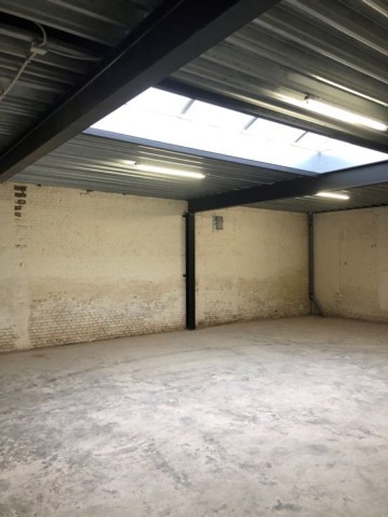 Grote garagebox / magazijn van ca.140m² (nieuw gebouwd 2017 volledig geïsoleerd, betonnen vloerplaat en nodige elektrische voorzieningen)