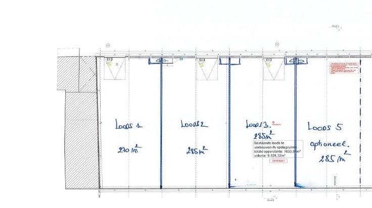 Alle loodsen zijn voorzien van sectionaalpoort met deur erin, toilet en lavabo op regenwater alsook verlichting is voorzien.