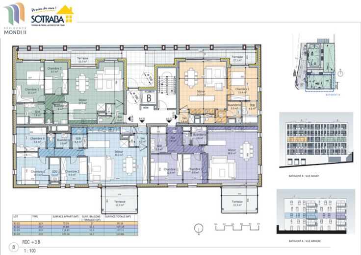 Sotraba, entreprise fière de son ancrage local dans la région de Nivelles et du Hainaut, présente avec enthousiasme son nouveau projet, Mondi II. Sotraba propose les appartements Mondi : 38 appartements et 3 commerces dans un cadre idéal. Le projet met en avant des standards de qualité élevés, tels que l'isolation acoustique et thermique, la classe énergétique A, des matériaux de pointe, des espaces verts bien pensés, et des voiries soigneusement aménagées. Les appartements, de 1 à 3 chambres, comprennent des penthouses au 5e étage, une cave et une place de parking en option. La résidence est proche de toutes les commodités et dispose de grandes terrasses. La brochure détaillée "Cahier des charges" offre plus d'informations. Mondi II, la phase 2 du projet "L'espace Mondi", incarne l'engagement de Sotraba envers la qualité et le bien-être de ses clients.