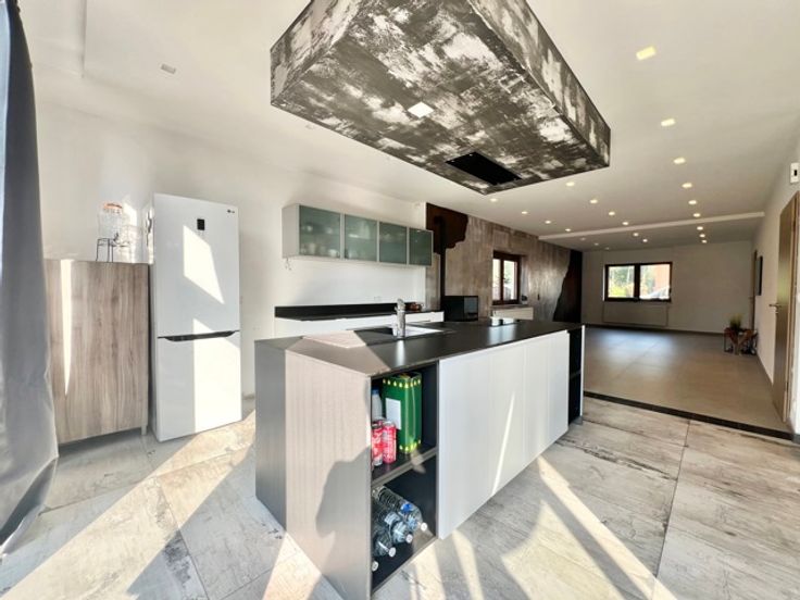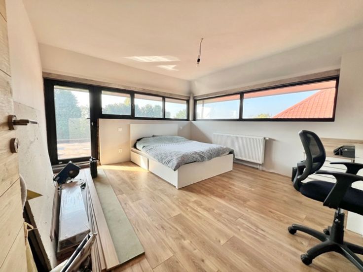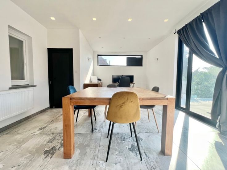 A.D.S. Immo biedt je deze prachtige villa met 5 slaapkamers in het hart van een rustige buurt in een weinig gebruikte straat. Gelegen op een groot perceel met een ruime tuin op het zuiden, geniet je hier van rust en ruimte. De woning is als volgt ingedeeld: een entreehal met apart toilet en garderobe, een woonkamer met open keuken/eetkamer + studeerhoek met uitzicht op de tuin en het terras, een doucheruimte, een bijkeuken en een slaapkamer. Op de bovenverdieping zijn er nog eens 4 slaapkamers, een doucheruimte met toilet en toegang tot de in te richten zolder van 30 m². Er is voldoende parkeergelegenheid en een parkeerstrook aan de linkerkant. Het huis heeft handmatige rolluiken en een elektrisch oplaadpunt voor je auto (enige afwerking vereist). Neem voor meer informatie contact met ons op via 0475 43 31 18 of info@adsimmo.be