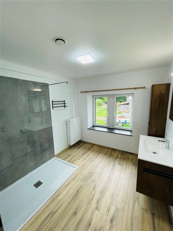 Sorry er is geen nederlandse vertaling beschikbaar. - Loué - Superbe maison entièrement rénovée située à Marcourt (Rendeux) et se composant comme suit: hall d'entrée, wc indépendant, cuisine, living, buanderie, hall de nuit, 3 chambres, salle de douche, grenier. Caution 2 mois de loyer, 35€/mois de provision pour l'assurance abandon de recours, l'entretien des fosses et l'utilisation et l'entretien du robot tondeuse. Libre immédiatement. A visiter sans tarder!