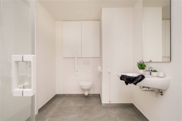 COMFORTABELE ASSISENTIEWONING MET 1 SLAAPKAMER, TERRAS, KELDERBERGING EN AUTOSTAANPLAATS. De assistentieflat is gelegen op de 1ste verdieping van een kleinschalig gebouw in residentie Botanic. De residentie onderscheidt zich door haar hedendaagse, frisse architectuur en wordt omgeven door mooi aangelegde tuin en groene parkomgeving. Vlotte bereikbaarheid gegarandeerd dankzij nabijheid A12 en N16. Op het domein van de residentie is een supermarkt aanwezig voor uw dagelijkse inkopen. Indeling: Inkomhal / lichtrijke en aangename leefruimte / goed uitgeruste open keuken / badkamer met wastafel, douche en wc / ruime slaapkamer / aangenaam terras. De residentie is volledig rolstoelvriendelijk, uitgerust met liften en beschikt over o.a. polyvalente ruimte met salon, eetzaal, ... Erkende assistentiewoning: Verkoop onder btw-stelsel voordeeltarief 12% en vrijstelling onroerende voorheffing.