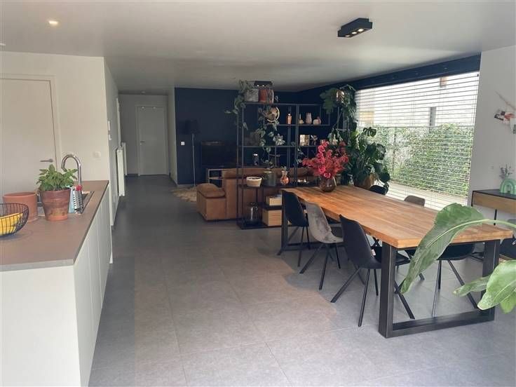 LUXUEUS, KWALITATIEF EN RUIM GELIJKVLOERSAPPARTEMENT 102M² MET 2 SLAAPKAMERS, GROOT WEST-GEORIËNTEERD TERRAS 21M², AUTOSTAANPLAATS EN INDIVIDUELE FIETSENBERGING. Rustige ligging in kleinschalige residentie nabij centrum met vlotte bereikbaarheid via N16, A12, N17 en E17. Inkomhal / wc me handwas / ruime en lumineuze living met eetplaats en super-ingerichte open keuken (totale opp.: 56m²) met toegang tot west-georiënteerd terras (21m²) / berging met was- en stookplaats (2,8 x 2m) / 2 slaapkamers (3,7 x 3,1m; 3,7 x 2,5m) / badkamer (7m²) met dubbele wastafel en inloopdouche. Buiten-autostaanplaats / individuele fietsenberging. Appartement is voorzien van 2 zonnepanelen en hoogwaardige materialen. Lasten: € 60 / maand. EPB in opmaak.