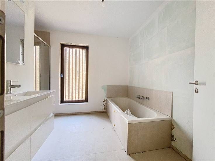 Ontdek deze nieuwe energiezuinige flat van 80 m². Gelegen in een condominium complex van 26 appartementen in 3 gebouwen, ligt het dicht bij de stad (hoofdwegen, winkels, scholen, openbaar vervoer, enz.), maar biedt toch een rustige, landelijke omgeving. Het complex grenst aan een bos dat een aangename wandeling biedt naar Géronsart. Je zult genieten van de ruime, lichte woonruimtes, de goed georiënteerde privéterrassen en de energiezuinige kenmerken (vloerverwarming, dual-flow ventilatie, aluminium kozijnen, enz.). Het bestaat uit een inkomhal met toilet, een woonkamer die uitgeeft op een ingerichte keuken van 31 m², een bijkeuken, 1 slaapkamer en een doucheruimte. Een parkeerplaats buiten is inbegrepen. Kelder beschikbaar tegen meerprijs. .