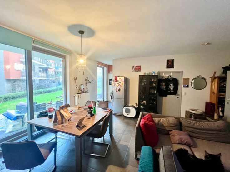 Dans un clos avec une très grande terrasse donnant sur un jardin à proximité de TOUT à pieds, le shopping Basilix est à 5 minutes. Accès proche au ring et à l'autoroute E 40 ! Immo Wauters à le plaisir de vous présenter un appartement situé dans une rue calme au RDCH avec une grande terrasse couverte et accès direct au jardin commun. Il est composé de deux chambres et se trouve à proximité immédiate de toutes les facilités. Un hall d'entrée avec coin vestiaire donne accès à un hall de nuit, aux salon-SAM, ainsi qu'aux deux chambres et SDB. Une grande double baie vitrée illumine l'appartement et donne accès à la terrasse avec accès au jardin. L'appartement est actuellement loué assurant une rentabilité locative - loyer : 1036,52 € + 85 € de charges communes. - Visites sur RDV les mardi et jeudi de 14.00 - 15.00 h