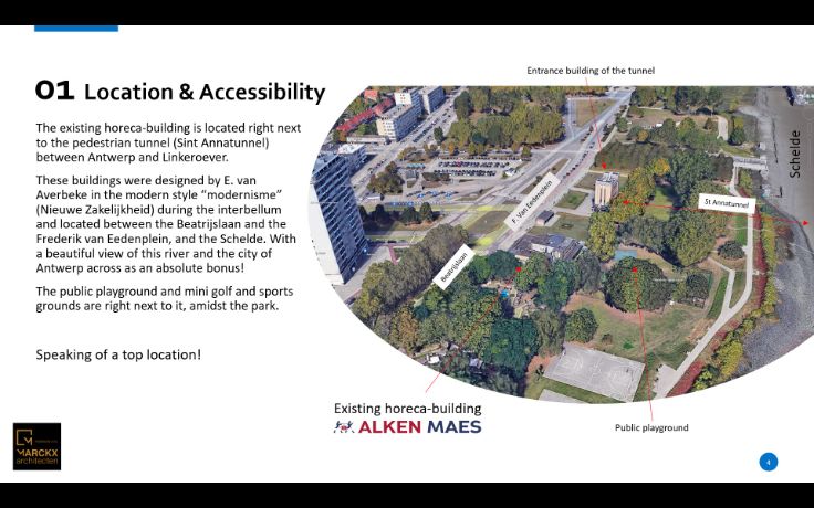 Gezocht! Top horeca-ondernemer voor dit super horeca-project met rooftop op Linkeroever met prachtig zicht op de Stad Antwerpen. Potentieel commercieel oppervlak van haast 3000m². Kans om mee aan de tekentafel te zitten voor deze mega opportuniteit mits bagage van ca 1000000 euro eigen inbreng. Huurbedrag nog te bepalen afhankelijk van het finale project en besprekingen.