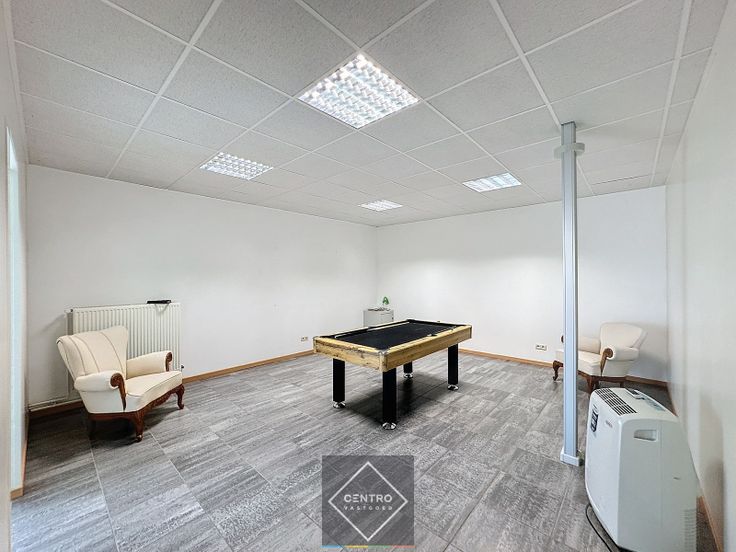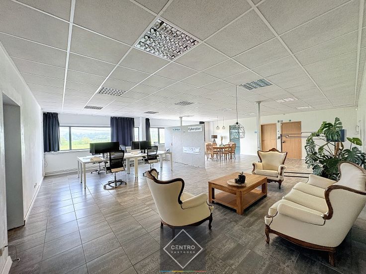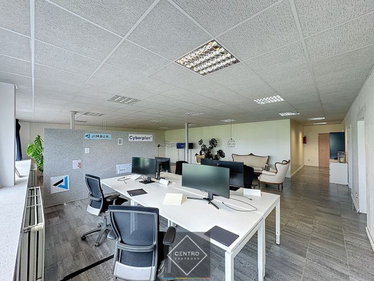 INDELING: inkomhal op gelijkvloers - landschapsbureel (85m²) - 2 burelen/vergaderzalen (28m² en 47m²) - gemeenschappelijk sanitair (dames/heren) en keuken met elektrische kookplaten, microgolf en spoelbak. Voldoende gemeenschappelijke parkeerplaatsen op het terrein voor de deur! AFWERKING: bevloering in keramische tegels, verlaagd plafond met TL-verlichting, voldoende stopcontacten, dubbele beglazing, aluminium schrijnwerk. NUTSVOORZIENINGEN: centrale verwarming op aardgas (radiatoren), stadswater, telefonie, internet (telenet) en databekabeling via plafond en zuilen. LIGGING: vlotte bereikbaarheid, op 3 km van E40. * Bijzonderheden: - De huurprijs is exclusief de gemene kosten (volgens werkelijk verbruik, jaarlijkse afrekening) en de onroerende voorheffing (forfaitair vastgelegd op 1 maand huur per jaar). - Onze referentie op www.centro.be: O0025A of telefonisch op 050 70 01 02. Renovatieplicht: onbekend