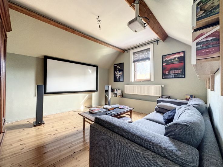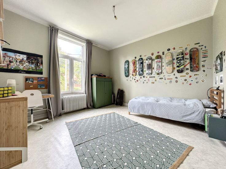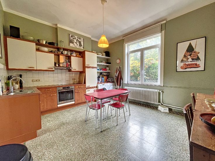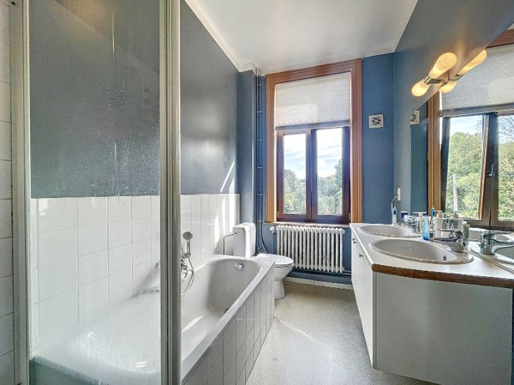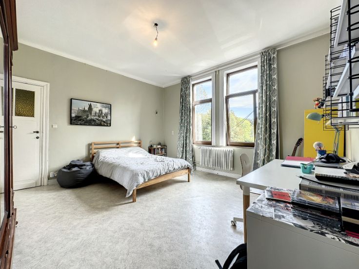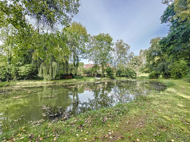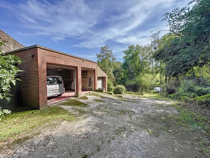 Vaste propriété de caractère sise sur un terrain de ±80 ares, composée d'une maison de ±1930 et de deux appartements. La maison développe ± 260m² habitables pour ± 400m² bâtis. Elle se compose, au rdc, d'un vaste living, d'une cuisine et d'une salle à manger. Les étages développent, quant à eux, 7 chambres de belles dimensions (]15m²) et 2 salles de bains. Des caves complètent le bien. (PEB F). Le premier appartement de ±135m² profite de spacieuses et lumineuses pièces de vie comprenant un séjour de ± 35m², une cuisine avec terrasse de ±10m² et d'une salle à manger de ±16m². L'espace nuit est composé d'une salle de bains et de 3 chambres (13m² et 2x18m²). Un grenier complète l'ensemble. (PEB F) Le second appartement de ±110m² estcomposé de vastes pièces de vie et de deux belles chambres de ± 15 et 30m². (PEB E) 5 garages, du parking et de nombreux espaces de stockage complètent l'ensemble. Cette belle propriété est implantée dans un cadre bucolique et jouit d'un étang. Vous serez séduits par ses volumes, son potentiel et sa situation. Les différentes unités sont actuellement louées.