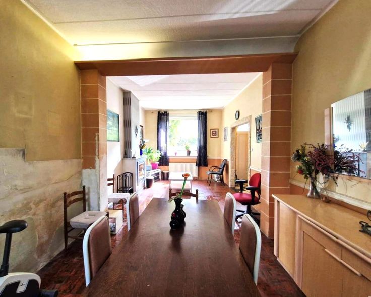 Faire offre à partir de 299.000 € (sous réserve d’acceptation des propriétaires). Jolie maison de Maître 3 façades à rafraichir (superficie totale d’après PEB +/- 380 m²), 7 chambres, et offrant un bel espace extérieur. Située proche du centre de Herstal, elle se compose comme suit : Sous-sol : Caves. Rez-de-chaussée : Hall d’entrée, double séjour (28 et 31 m²), cuisine semi-équipée (40m²) (taque vitro, four, hotte, frigo, lave-vaisselle), Pièces d’été indépendantes comprenant : salle de douches (douche italienne, lavabo, w.c.), cuisine semi équipée, chambre. Allée latérale, garage, carport, terrasse et jardin. 1er étage : Hall de nuit, toilette indépendante, 4 chambres (12, 12, 12, 17 m²) 2 salles de bains (baignoire, lavabo, toilette) 2-é me étage : 3 chambres (12, 16, 16m²), bureau et possibilité de salle d’eau. Châssis double vitrage pvc avec volets en majorité, chauffage central gaz, insert à pellets et climatiseur réversible, alarme, vidéophone. R.C. : 1474 €, superficie totale terrain 660 m². PEB: E , G spéc: 372 kWh/m².an, E totale: 141.617 kWh/an, n° 2024.04.19.01.34.63. Situation stratégique !