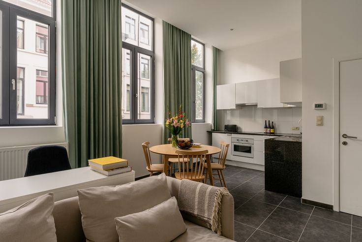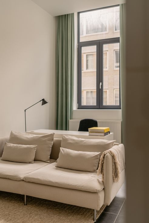 De gemeubelde studio is gelegen in de Isabella Brantstraat, een straat vernoemd naar de 1ste vrouw van Rubens. Je hebt een eigen voordeur waardoor het lijkt alsof je een huisje huurt. Heel handig om op het gelijkvloers in de gang bijvoorbeeld een fiets te plaatsen. De studio zelf bevindt zich op de 1ste verdieping. Hij is met veel stijl ingericht en heeft zelfs net nieuwe gordijnen gekregen (& we are in love with the mint color). De keuken is uitgerust met een kookplaat, een gecombineerde oven/micrgolfoven, een koelkast en een vaatwasmachine. Er is ook een Nespresso koffiemachine zodat je vrienden kan uitnodigen voor een kopje heerlijke koffie. Ga je liever lekker dineren, dan kunnen we je ‘The Finch’ aan de overkant van de straat ten zeerste aanbevelen. De badkamer heeft een grote inloopdouche, een lavabo en een toilet. De kosten bedragen 250 euro/maand en omvatten alle privatieve verbruikskosten voor water, gas, elektriciteit en internet/tv. De verhuurperiode voor dit appartement is bespreekbaar (met een minimum huurperiode van 3 maanden). Volg Oh my George op Instagram en Facebook om op de hoogte te blijven van het meest recente aanbod: findmygeorge_.