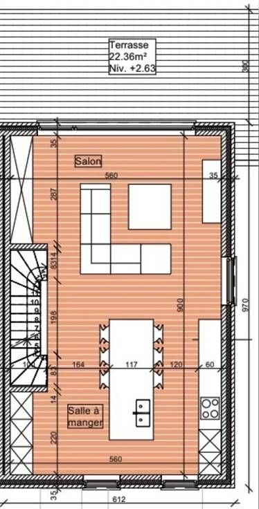 Sorry er is geen nederlandse vertaling beschikbaar. Trust a le plaisir de vous présenter ce magnifique projet de 7 maisons neuves basse énergie, situé à deux pas du centre-ville de Barvaux. Vous serez séduits par ce lotissement entre ville et village et par la qualité de conception des maisons. La situation est idéale à 10 km de Hotton, à 18 km de Marche-en-Famenne, à 40 km de Huy et à 50 km de Liège. La maison "LOT 1", (sup. totale brute +/- 177 m² & sup. totale nette +/- 137 m²) se compose comme suit : Le rez-de-chaussée propose un hall d'entrée qui dessert un couloir permettant d'accéder à un WC séparé, au cellier et au garage. Le rez-de-jardin se compose d'un vaste séjour avec un espace cuisine. Le 1er étage propose 3 belles chambres, une SDD et une SDB avec WC. Combles aménageables. Ext. : Un Joli terrain de +/- 5 ares avec une terrasse orientée nord-ouest. Sols : Carrelage et quick-step Technique : Châssis triple vitrage en PVC, chaudière au gaz à condensation, production d'eau chaude en instantanée, VMC simple flux (système C) , vidéophone et citerne d'eau de pluie (6.000 L). Cuisine non comprise. Frais de raccordement : 5.000 euros HTVA (budget estimatif). Prix : 322.500 euros HTVA (hors honoraires notaire, raccordements impétrants et frais de bornage). Partie construction sous 21% de TVA et partie terrain sous les droits d'enregistrement, soit 12,5%. Livraison prévue pour l'acte. Infos & visites au 010