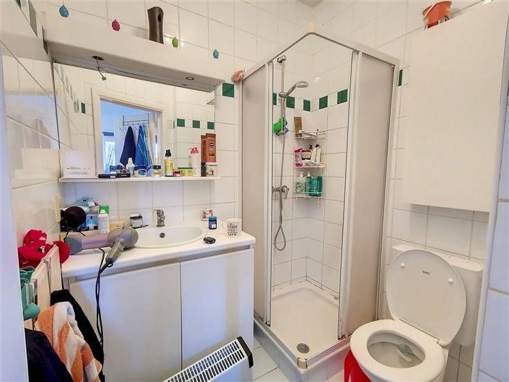 COMPOSITION: séjour de +/-35m², cuisine équipée ouverte, salle de douche (douche, lavabo et WC). Cave. CARACTERISTIQUES: Quartier Transvaal - Immeuble rénové en 1993 - Peu de charges communes - Le bien est loué 525.95€/mois hors charges (début du bail 15/03/2020, bail de 3ans) - Chauffage central gaz (calorimètres ultrasons) : nouvelle chaudière commune 2019 - Boiler pour l'eau chaude - Châssis PVC double vitrage - Pas d'ascenseur - Revêtement : Carrelage - Parlophone - Compteur individuel pour l'électricité - Compteur de passage pour l'eau - RC net, RC indexé et Précompte immobilier : non connus car division en cours - PEB F - Rens. urba. : reçus le 08/03 - Acte de base en cours. D'autres unités sont disponibles (studio, 1 chambre).