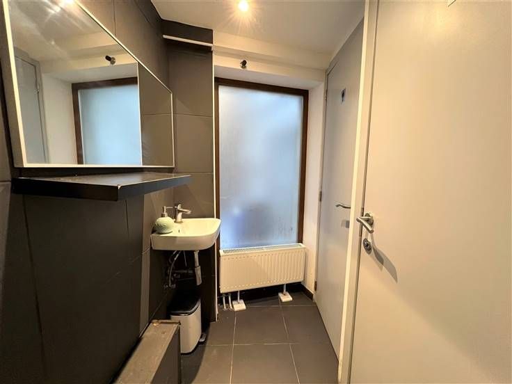 Composition: surface commerciale (+/- 45m²), espace stockage/réserve (10m²), wc H/F (5m²). Accès cour arrière (8m²).