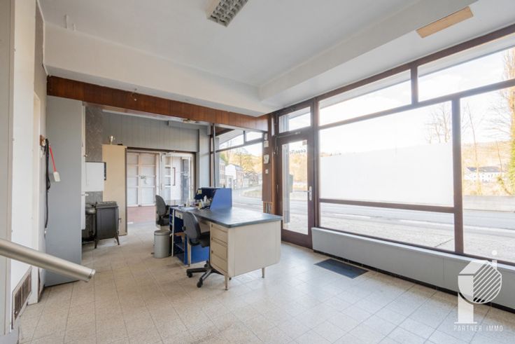 Immeuble de commerce au rez-de-chaussée proposant plusieurs possibilités d'aménagement et un grand appartement à l'étage.