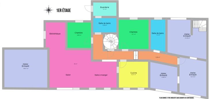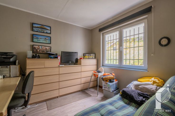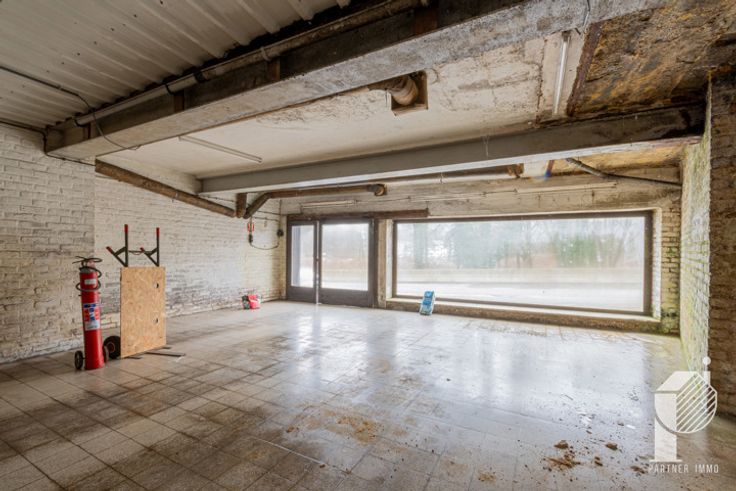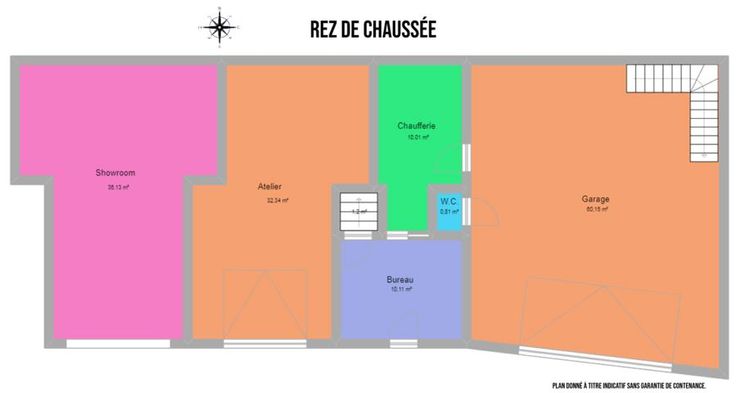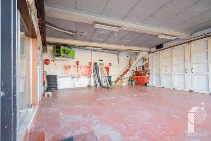 Rez: un grand garage (pour une activité) avec un wc séparé, une remise à l'arrière (espace chaudière) et qui donne un accès à l'étage pour trois pièces à aménager. Un grand bureau, un atelier/entrepôt avec une porte indépendante et un showroom avec une belle vitrine commerciale.