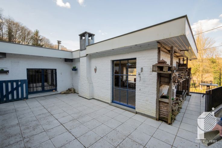 Extérieur: un grand parking devant l'immeuble, une terrasse à l'arrière avec deux accès (soit par l'appartement ou côté du bâtiment).