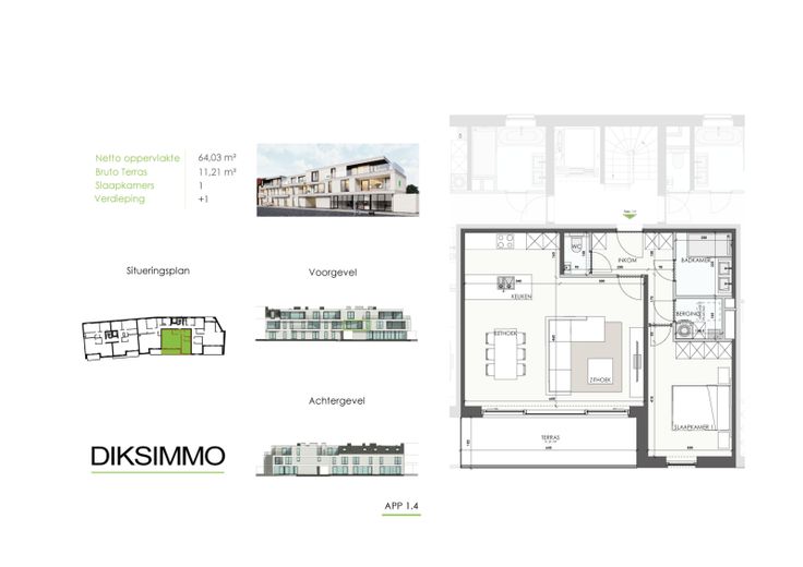We bieden u in totaal 11 woongelegenheden, 1 handelsruimte, 14 staanplaatsen en 13 garages aan. De oppervlaktes variëren van 81 m² tot 134 m², er is keuze uit een appartement met een tuin, een groot terras of een ruim dakappartement met ruime leef terrassen.