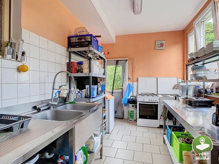 Café/Brasserie op de begane grond: een levendige ruimte met een goede capaciteit, perfect voor het ontwikkelen van je restaurant- of barbedrijf. Je hebt een buitenterras om je klanten op zonnige dagen te verwelkomen. Hoewel het gebouw gerenoveerd moet worden, biedt het een enorm potentieel voor investeerders (talloze verbouwingsmogelijkheden). Met een beetje fantasie en een beetje werk kun je deze plek omtoveren tot een gezellige, moderne ruimte. Boven vind je 7 ruime slaapkamers die kunnen worden gebruikt als personeelsaccommodatie of als gastenkamers voor je klanten. Een gedeelde doucheruimte is beschikbaar voor extra comfort. De zolder (+/- 50m²) biedt interessante verbouwingsmogelijkheden, en de kelders (+/- 65m²) zijn ideaal voor opslag, of voor uw commerciële activiteit. Profiteer van de grote tuin aan de achterzijde, die een rustige omgeving biedt om te ontspannen. Ideaal gelegen, dicht bij alle voorzieningen, zal dit huis je overtuigen. PVC en aluminium ramen met dubbele beglazing, twee-uursmeter en 2021 oliegestookte ketel.