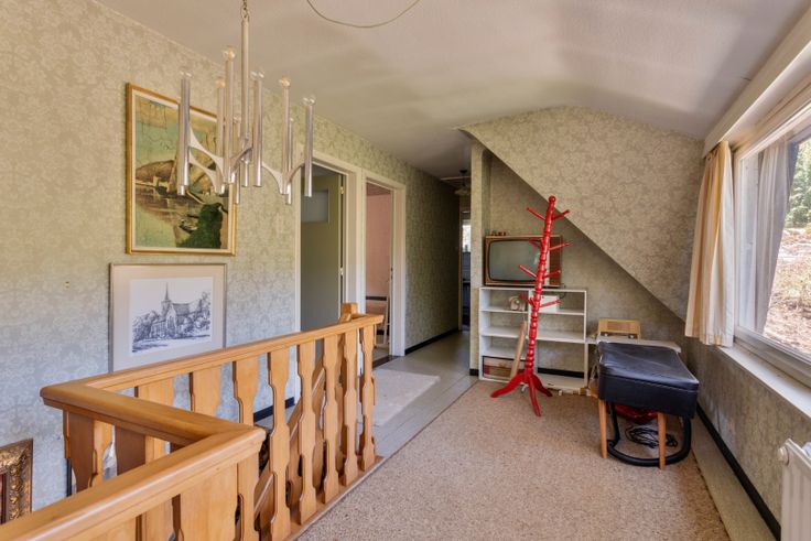 Op de eerste verdieping zijn 3 ruime slaapkamers, de badkamer en één zolderkamer aanwezig.