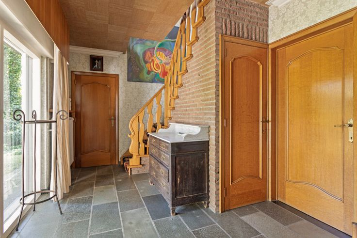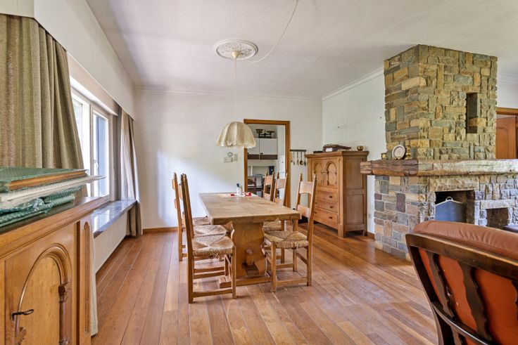 We betreden deze te renoveren woning via een zeer ruime inkomhal welke toegang biedt tot de leefruimte en inpandige garage. De leefruimte is zeer ruim en kan ingedeeld worden in een eethoek en een gezellige zithoek met mogelijkheid tot openhaard. Aansluitend aan het leefgedeelte vinden we de aanbouw welke ingericht kan worden als werkruimte, speelkamer, leeshoek,... De keuken is basis uitgerust en heeft toegang naar buiten en naar de bijkeuken met vervolgens ook een doorgang naar de wasplaats.
