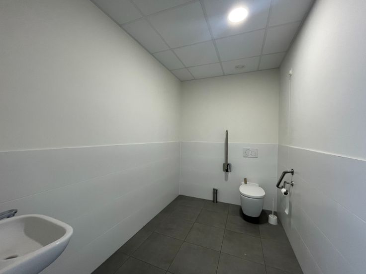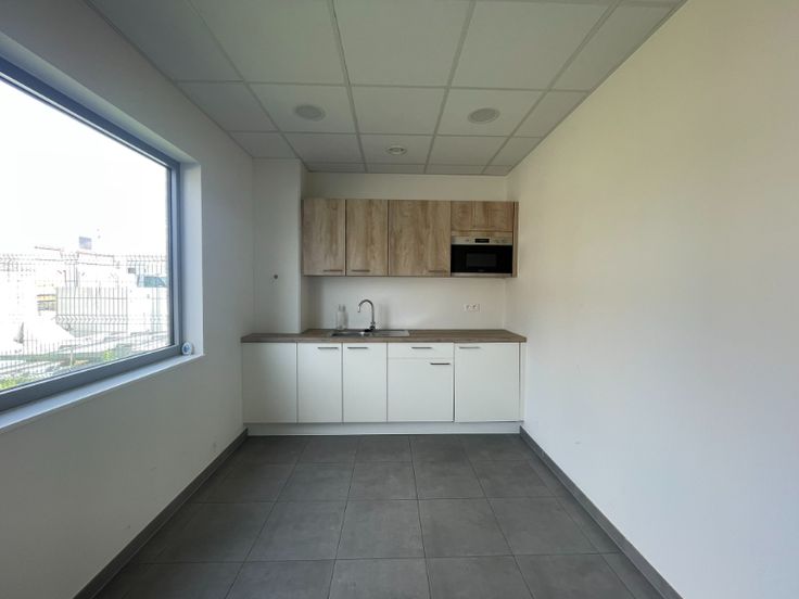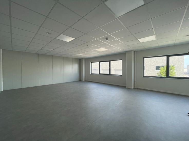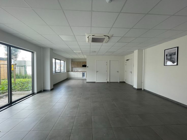 Het kantoor heeft opengaande ramen, verlaagd plafond met led-armaturen, keramische tegelvloer, sanitair H/D, kitchenette, VRV-units (koelen en warmen).