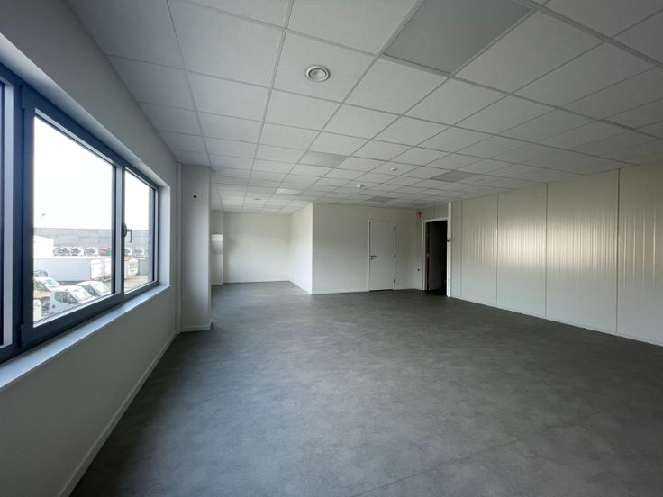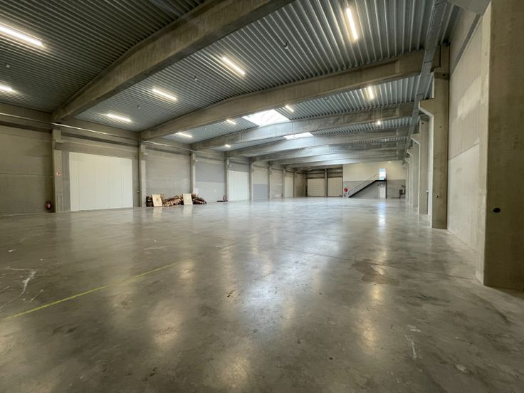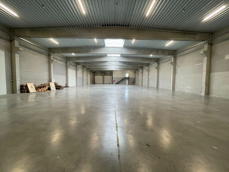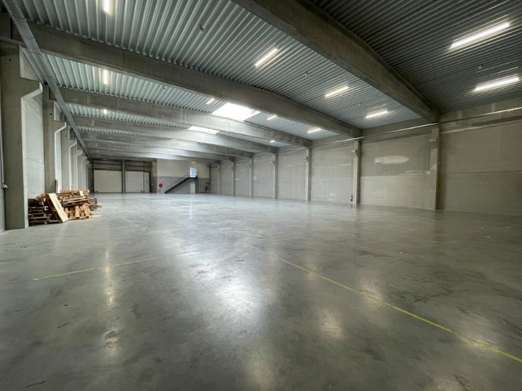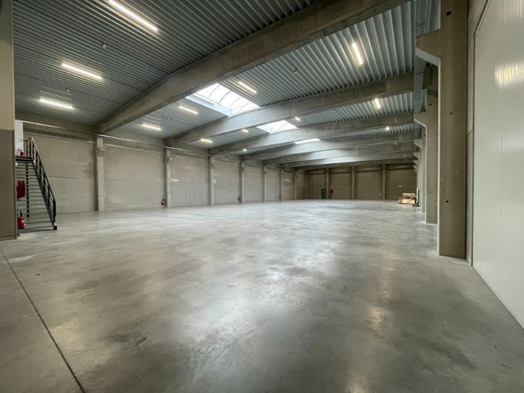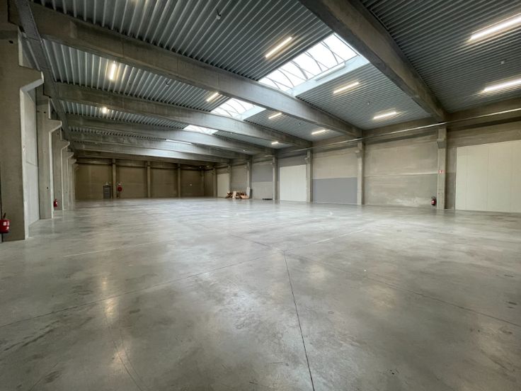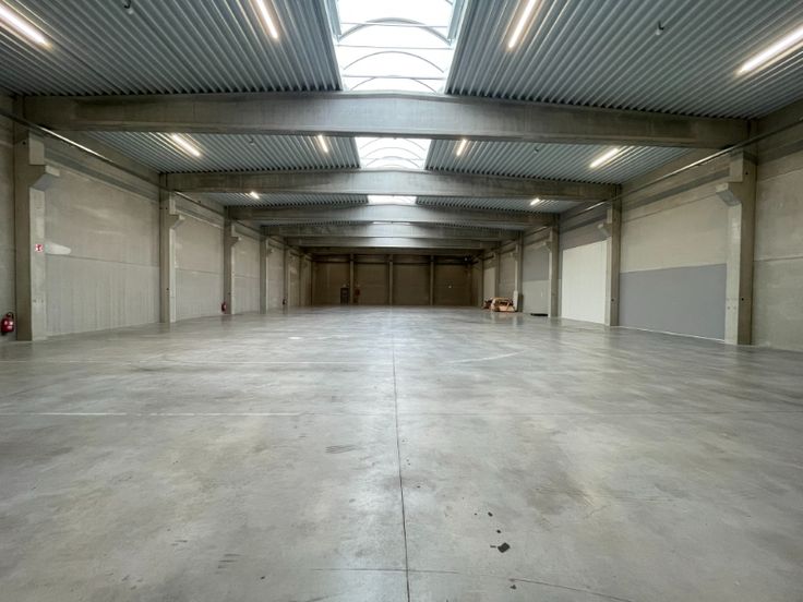 Magazijn is opgebouwd uit een betonstructuur met betonpanelen, geïsoleerde steeldeck met lichtstraat met rookluiken, Led armaturen, 2 automatische sectionale poort(en), polybetonvloer (draagkracht 5T/m²), drijfkracht voorzien: 80A – 400V (hoogspanningscabine). De unit is volledig overspannen. Mogelijkheid tot plaatsen van een rolbrug.
