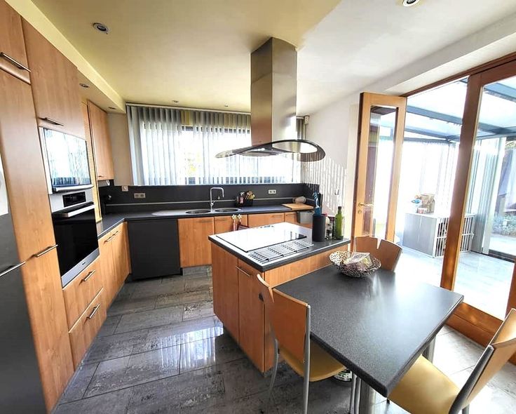 Indeling : inkomhall en nachthall - lichtrijke woonkamer en eetkamer 47m² - verzorgde keuken 13m² - veranda met pelletkachel 11m² - 3 slaapkamers (11-9-14m²) - badkamer (bad/douche + lavabo + wc) 6m².