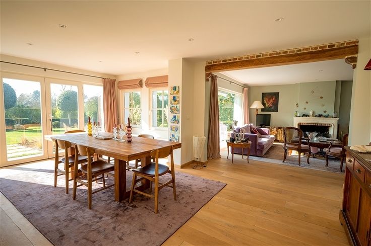 Développant une superficie de 300 m2, elle se compose d'un joli hall d'entrée, un séjour / salle à manger de 50 m2 avec feu ouvert, une cuisine full équipée de 30 m2 avec son coin à manger, l'ensemble ouvert sur le jardin idéalement orienté sud-ouest.