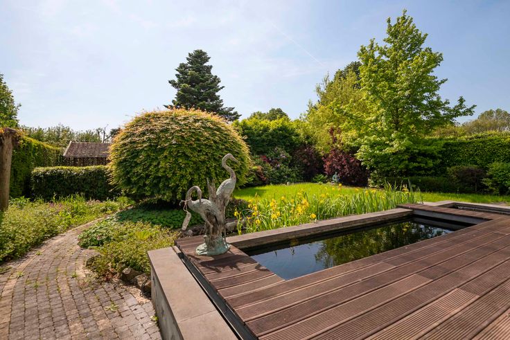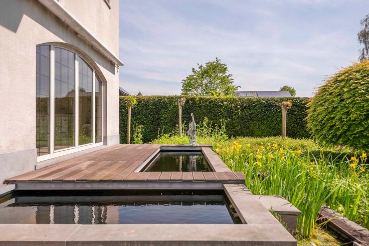 ontbijten met het gezin. De ruime leefruimte met open haard (gas) biedt een prachtig uitzicht op de verzorgde tuin. De prachtige zuidgeoriënteerd tuin met eigen vijver biedt een zonnige plek om te ontspannen en te genieten van zomerse barbecues met familie en vrienden.