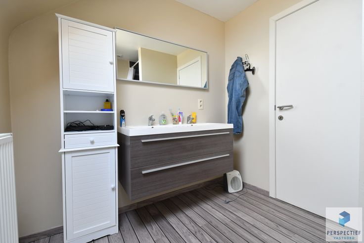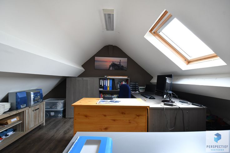 INDELING: inkomhal met trap en vestiaire, grote leefruimte met zicht op de diepe tuin, ruime ingerichte keuken, apart toilet, was- en bergplaats, grote garage. Op de verdieping bevinden zich de badkamer, 2 slaapkamers. De zolder is bereikbaar via een vaste trap en werd ingericht als 3de slaapkamer.