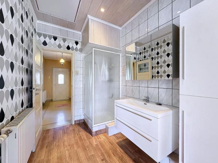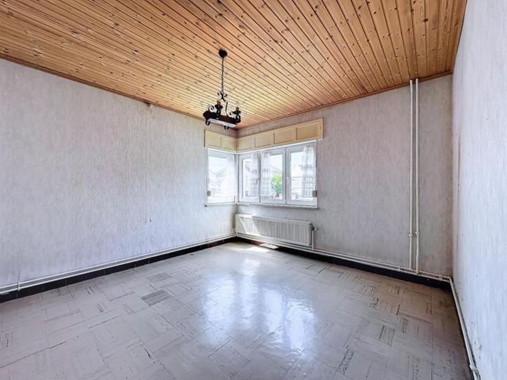 Située dans une rue paisible de Neupré, cette maison de type bungalow se compose au rez-de-chaussée d'un couloir central (8m²), d'un salon (17m²), d'une salle à manger (13m²), d'une cuisine semi-équipée (12m²), d'une chambre (15m²), d'une salle de douche avec WC (8m²) et d'une véranda à l'arrière (7m²). Au sous sol une cave (15m²). A l'étage un grenier à aménager pouvant accueillir entre une et deux futures chambres. A l'extérieur un jardin avec garage. RC : 880 EUR. Châssis double vitrage PVC. Chauffage au mazout. Visites sur rdv uniquement au 04 337 02 77
