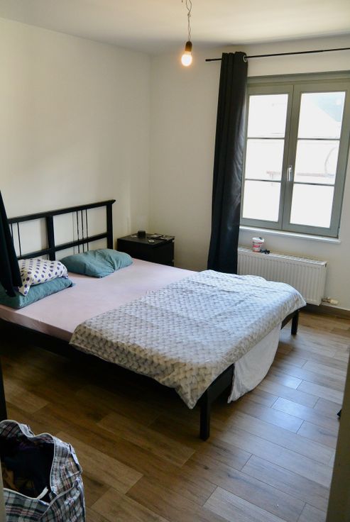 Centraal gelegen appartementsgebouw met 2 appartementen + garage / magazijn . Op het gelijkvloers is er een grote garage welke afzonderlijk verhuurd is . Het appartement op de eerste verdieping omvat : Inkom , apart toilet , badkamer , 2 slaapkamers , woonkamer met open keuken , berging terras . EPC = 132 Dit appartement is momenteel verhuurd . Het dakappartement omvat : Woonkamer met open keuken , berging , terras , apart toilet , slaapkamer met aansluitende badkamer , onder het dak is er nog een 2de slaapkamer . EPC = 119 . Elektriciteit conform .