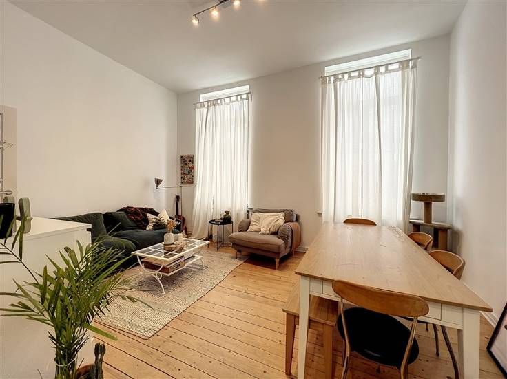Bezoek deze woning op 0474/32.54.05 - Louizawijk, 250 m van het Stéphanieplein, zeer mooi appartement met 1 slaapkamer van ±55 m² gelegen op de 1ste verdieping van een mooi Brussels huis. Het bestaat uit een inkomhal met apart toilet, een woonkamer van ±30 m² met een open volledig ingerichte keuken (oven, kookplaat, afzuigkap, koelkast, vriezer, vaatwasser), een slaapkamer van ±13 m² en een douchekamer. Talrijke winkels, restaurants, bioscoop en vervoersmogelijkheden op loopafstand. Overal parketvloeren, dubbele beglazing. Lasten (vaste prijs): 125€/maand (gemeenschappelijk, verwarming, water). Pluspunten: ligging +++, onlangs gerenoveerd, lage lasten, gerenoveerd in 2021, tramhalte "Stéphanie" op 50m. De afmetingen worden ter indicatie gegeven. Beschikbaar op 05/06/2023.
