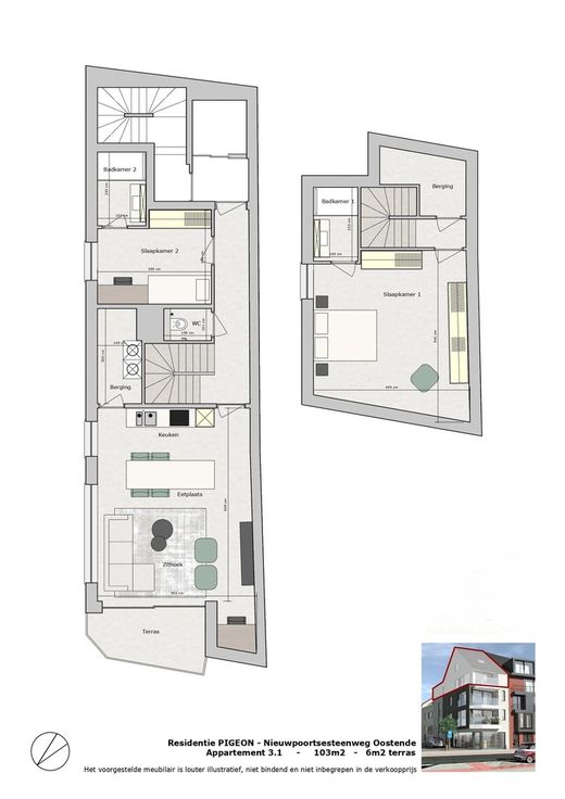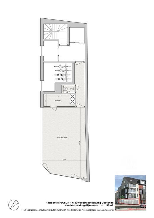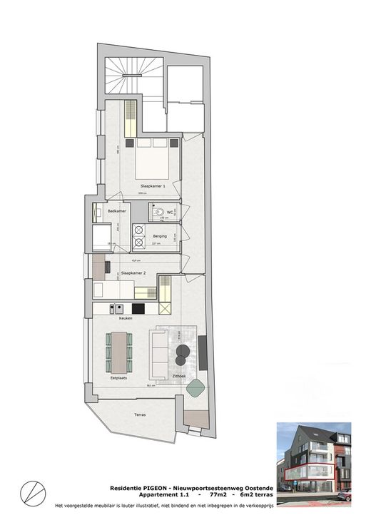 Residentie Pigeon is een kleinschalige nieuwbouwresidentie met 3 appartementen en een kantoorruimte. De residentie is gelegen op de hoek van de Nieuwpoortsesteenweg en Duivenhokstraat, op een gunstige en centrale ligging vlakbij het strand, zee en stadscentrum met zicht op de wellington renbaan. De appartementen hebben 2 ruime slaapkamers en beschikken telkens over een open geïnstalleerde keuken met bijhorende berging, leefruimte, badkamer en afzonderlijk toilet. Daarnaast kunt u genieten van een open zicht op het ruime terras.