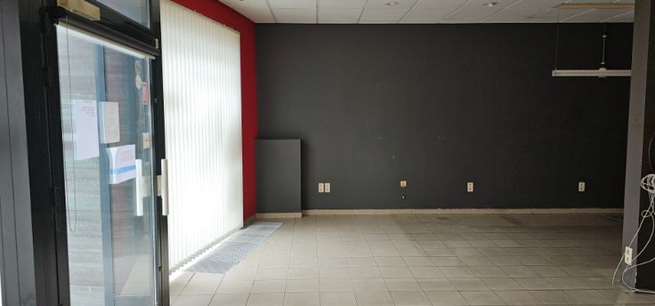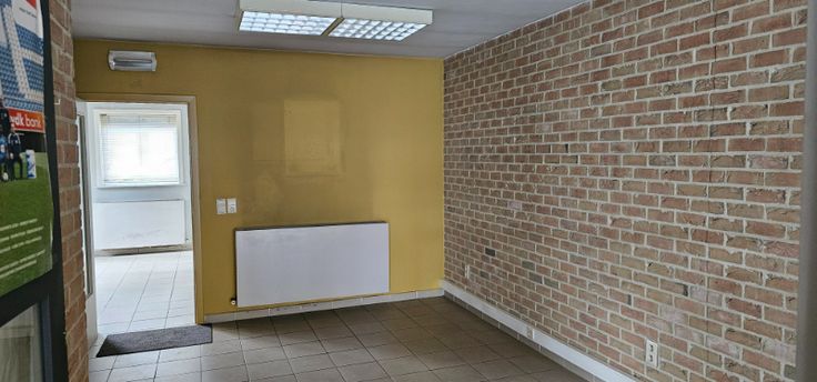 Indeling is als volgt : open ruimte met aanpalend bureel, 2 bergruimtes, sanitaire blok en achterinkom.