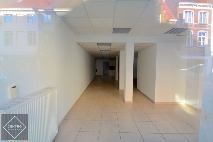 Gelijkvloers: Open ruimte met kitchenette en apart toilet. Gevelbreedte van 6m langs prominente Handelsstraat te Brugge.