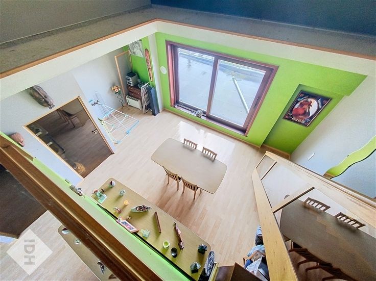 A l'étage, et via un accès séparé, un duplex avec salon, salle à manger, cuisine semi-équipée, salle de bains et deux chambres.