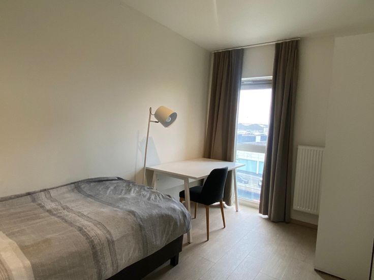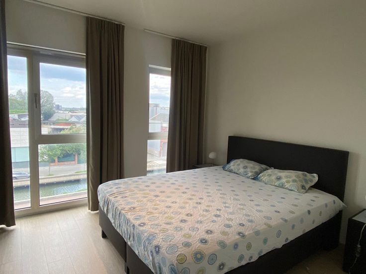 Mooi ingericht 2-slaapkamerappartement in residentie Nieuwe Kade vlakbij de Antwerpse haven. Het appartement gelegen op de vierde verdieping bestaat uit een inkomhal met apart toilet, leefruimte met volledig ingerichte keuken en terras, badkamer, berging met wasmachine en droogkast, 2 slaapkamers. Ondergrondse staanplaats en individuele berging zijn inbegrepen in de prijs. Bed-, bad- en keukenlinnen zijn voorzien. Maandelijkse huur 1250 Euro exclusief kostenprovisie van 350€ voor water, verwarming, elektriciteit, gemeenschappelijke kosten en tv/wifi. Dit in het noordelijke deel van Antwerpen, met de haven, het eilandje en Park Spoor Noord op zeer korte afstand!