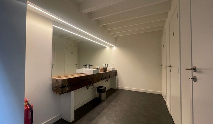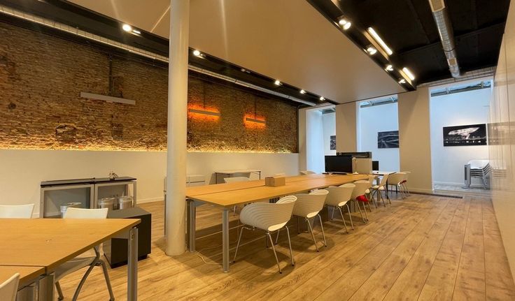 Specificaties: landschapskantoor, aluminium schrijnwerk met dubbel glas, plafond met betonnen gewelven, led-armaturen, databekabeling, vloercontactdozen, laminaat parketvloer, privatief sanitair H/D, cv op gas