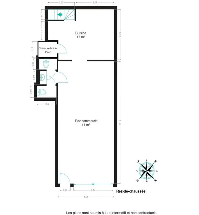 - Rez de chaussée commercial (ancien restaurant) avec cuisine, sanitaires, chambre froide et réserve. Entrée indépendante.