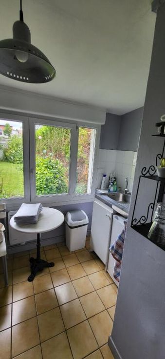 coin cuisine, toilettes, cave . Terrasse et très beau jardin avec garage et petit atelier attenant, accès par portail électrique. Très beau produit , proximité immédiate bus.
