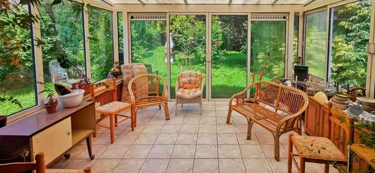 Elle est composée au rez-de-chaussée d'une salle à manger salon avec cheminée feu de bois, d'une véranda donnant sur l'extérieur, d'une cuisine équipée, d'une salle de bain avec toilettes séparées et d'une chambre.