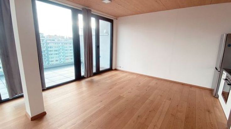 Langs de Maas, op steenworp afstand van het Quartier Latin, bieden wij u een appartement met 2 slaapkamers van 80m² aan. Gelegen op de 8e verdieping, kunt u genieten van het adembenemende uitzicht op de Maas. Het bestaat uit een ruime woonkamer met eetkamer, volledig uitgeruste keuken, doucheruimte, apart toilet en wasruimte. Bezoek op afspraak : info@twentyseven.be / +32 492 42 74 61